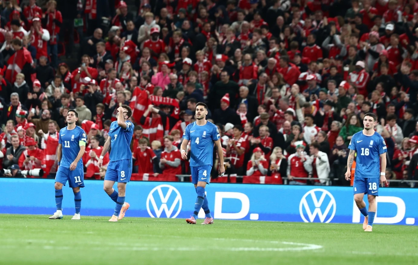 Η Εθνική Ελλάδας γνώρισε νέα βαριά ήττα, χάνοντας με το ίδιο σκορ, 3-1, από τη Δανία στην Κοπεγχάγη, μία εβδομάδα μετά την ήττα από τη Σκωτία. Το αποτέλεσμα αυτό έθεσε την «γαλανόλευκη» οριστικά εκτός μάχης για την πρόκριση στην τελική φάση του Μουντιάλ 2026.