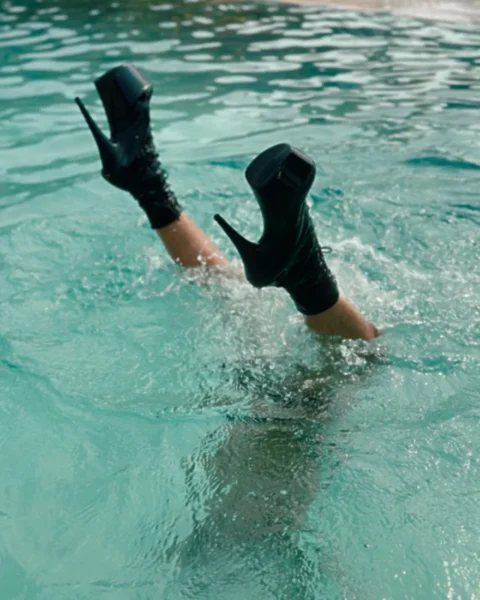 Ανέβασε μέσα από το προφίλ του που μετρά πάνω από 80.000 ακολούθους, μια σειρά από στιγμιότυπα με τον ίδιο να παίρνει διάφορες πόζες μέσα στο νερό και να ισορροπεί με τα τακούνια έξω από την πισίνα.