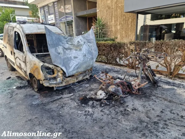 Εμπρησμός ενός επαγγελματικού βαν και μιας μοτοσικλέτας έγινε τα ξημερώματα της Πέμπτης (06.07.2023) στο Καλαμάκι Αλίμου.