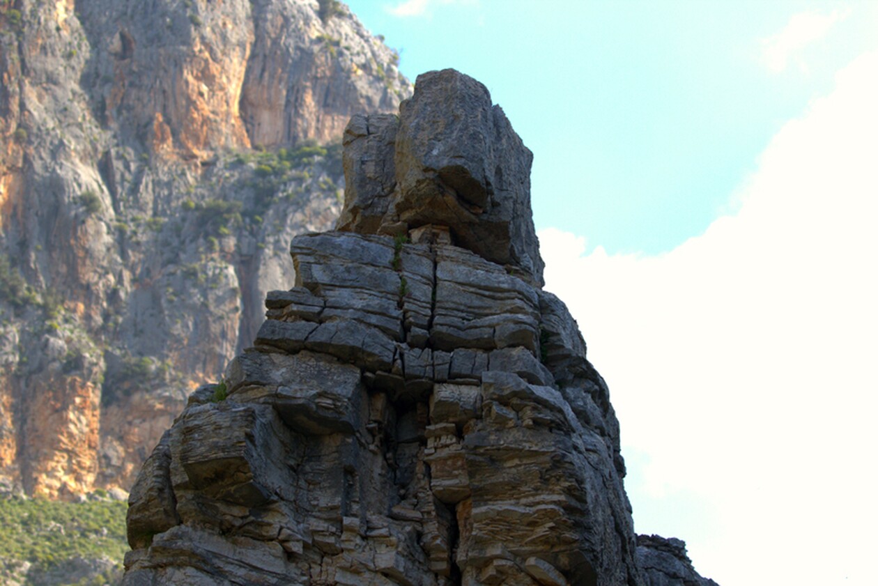 Επίσης οι σχηματισμοί από τα πετρώματα είναι εντυπωσιακοί. Είναι μία επιβλητική βραχώδης εικόνα που προκαλεί δέος. Καθώς προχωράμε μέσα στο φαράγγι συναντάμε ρέματα και μικρούς καταρράκτες. Ενώ δίπλα στο μονοπάτι βλέπουμε κρασπεδωτές χελώνες, ένα ενδημικό είδος στην χώρα μας που προστατεύεται.