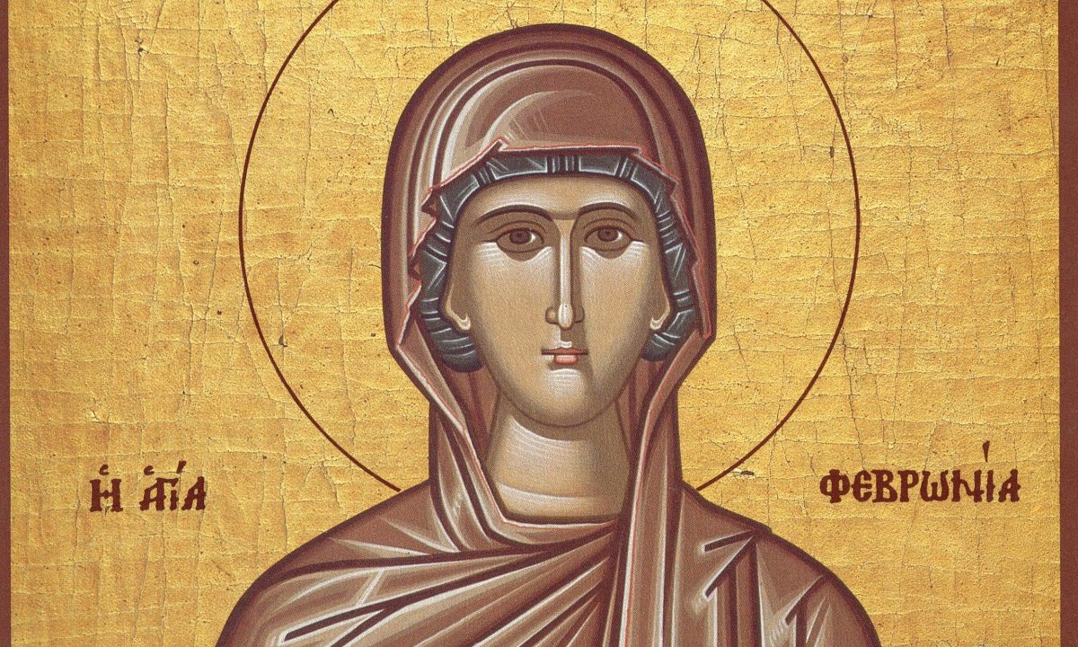 Ιδιαίτερη αναφορά αξίζει στην Αγία Φεβρωνία. Μια μορφή που ξεχώριζε τόσο για την εξωτερική της ομορφιά όσο και για την αγνότητα της ψυχής της. Σε ηλικία μόλις 17 ετών, επέλεξε να αφιερωθεί στον ασκητικό βίο. Εισερχόμενη σε μοναστήρι στη Μεσοποταμία, όπου ηγουμένη ήταν η θεία της, Βρυένη. Παρά το νεαρό της ηλικίας της, η Φεβρωνία προσαρμόστηκε με ζήλο στους δύσκολους κανόνες της μοναχικής ζωής, βρίσκοντας παράλληλα χρόνο για βαθιά μελέτη των Θείων Γραφών.