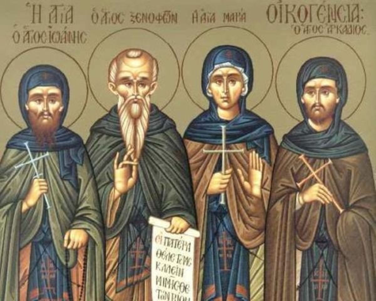 Η Εκκλησία μας τιμά σήμερα, 26 Ιανουαρίου, τη μνήμη του Οσίου Ξενοφώντος, της συζύγου του Μαρίας και των τέκνων τους Αρκαδίου και Ιωάννου. Πρόκειται για μια από τις πιο συγκινητικές περιπτώσεις της χριστιανικής παράδοσης, όπου μια ολόκληρη οικογένεια αφιερώθηκε στον Θεό και την άσκηση.