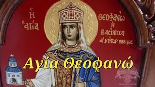 Η Αγία Θεοφανώ, γνωστή για την αγιότητά της, υπήρξε σύζυγος του Λέοντα του Σοφού (886–912 μ.Χ.) και ξεχώρισε για την ευσέβεια, την ταπεινότητα και την αφοσίωσή της στο έργο της ελεημοσύνης. Γεννημένη στην Κωνσταντινούπολη από τον Κωνσταντίνο Μαρτινάκιο και την Άννα, ανατράφηκε με ιδιαίτερη φροντίδα και μόρφωση.