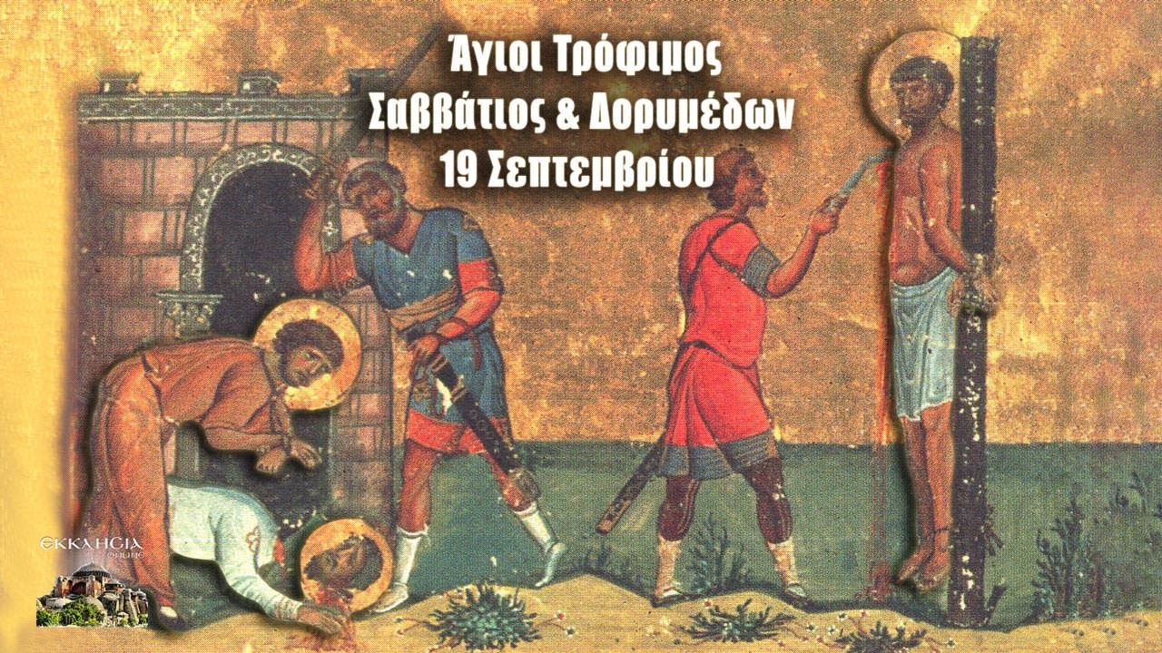 Σήμερα, Πέμπτη 19 Σεπτεμβρίου, το εορτολόγιο τιμά τους Αγίους Τρόφιμο, Σαββάτιο και Δορυμέδα. Οι εορτάζοντες είναι οι: