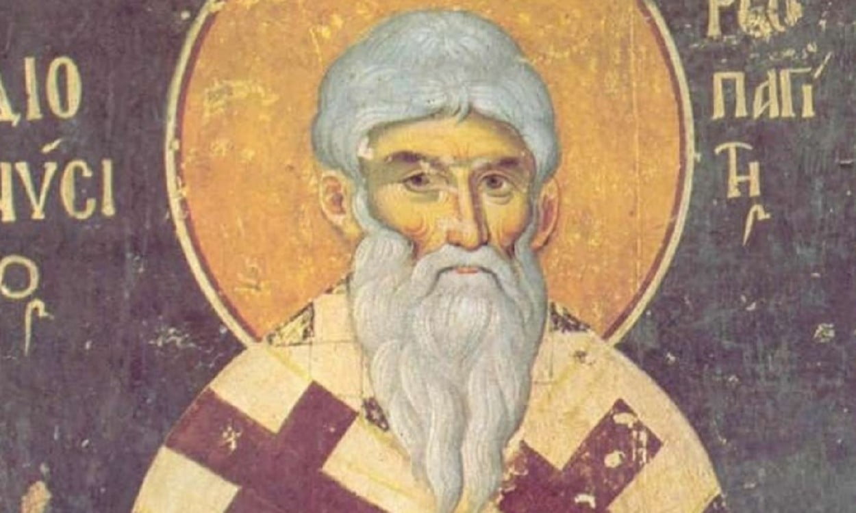 Ο Άγιος Διονύσιος προερχόταν από την Αθήνα και έζησε κατά την αυτοκρατορία του Δομετιανού. Διακρινόμενος για την πνευματική του καλλιέργεια και τη φιλοσοφική του κατάρτιση.