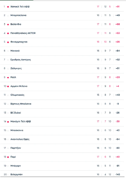 Ο Παναθηναϊκός «πάτησε» τη Χάποελ Τελ Αβίβ με 93-82 στο ΟΑΚΑ. Δείτε πώς διαμορφώνεται η Euroleague βαθμολογία μετά τη μεγάλη νίκη των «πρασίνων» και το ρεσιτάλ του Σλούκα.