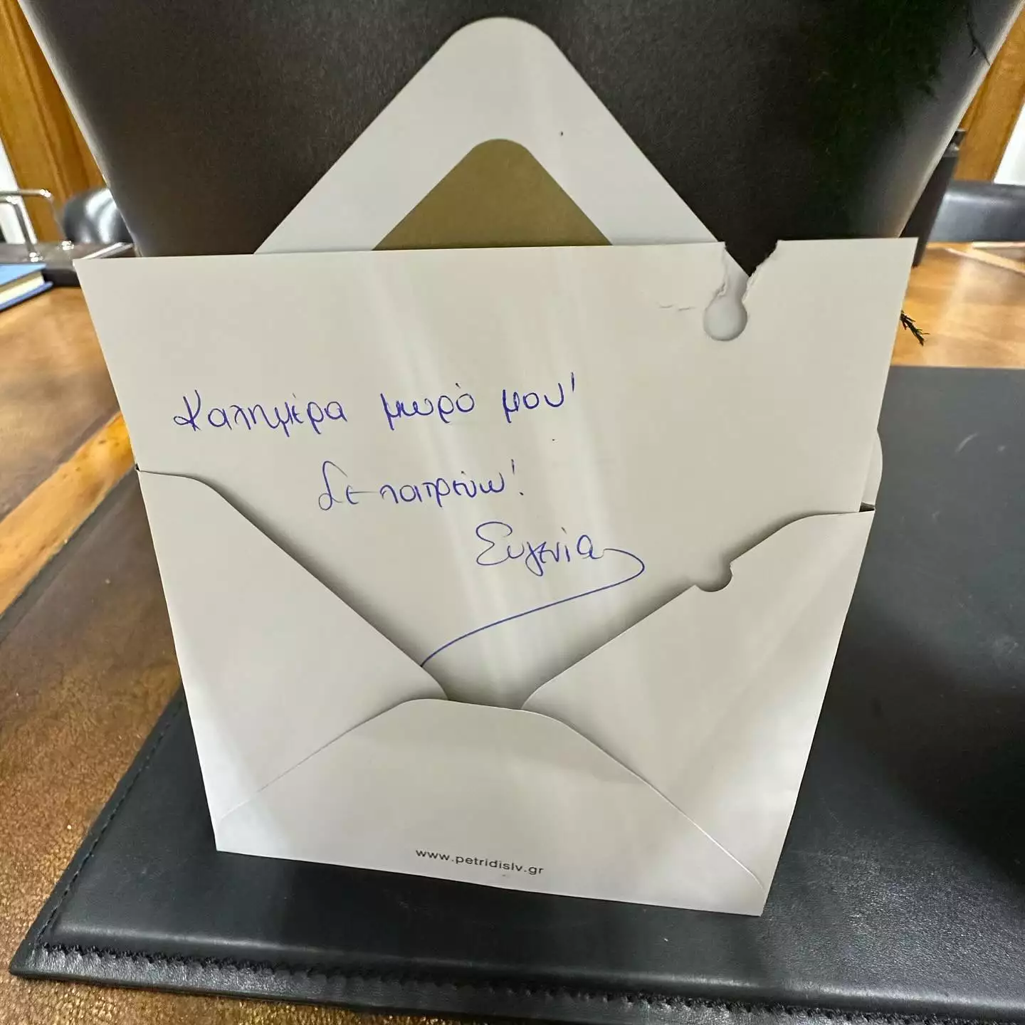 «Μπαίνοντας στο γραφείο μου σήμερα, με περίμεναν αυτά όμορφα λουλούδια που μου έστειλε το «λουλούδι» μου η Ευγενία Μανωλίδου» έγραψε στην ανάρτησή του ο Άδωνις Γεωργιάδης ενώ το σημείωμα με το οποίο η Ευγενία Μανωλίδου είχε συνοδεύσει την ανθοδέσμη της, έγραφε. «Καλημέρα μωρό μου, σε λατρεύω».