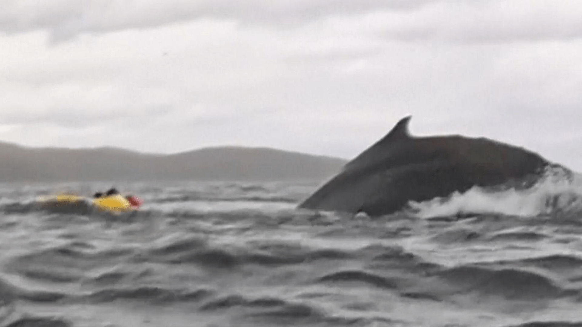 Ο καγιάκερ Adrián Simancas κωπηλατούσε αμέριμνος κοντά στην πόλη Punta Arenas στην Παταγονία. Όταν ξαφνικά μια τεράστια φάλαινα αναδύθηκε από το νερό και τον παρέσυρε μαζί με το καγιάκ του. Μέσα σε πέντε δευτερόλεπτα, ο Simancas επανεμφανίστηκε στην επιφάνεια, σώος αλλά σοκαρισμένος.