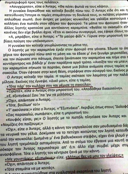 Εκπληκτοι οι μαθητές και οι μαθήτριες διάβασαν φράσεις με σεξουαλικά υπονοούμενα που εξάπτουν τη φαντασία τους, αλλά και ύβρεις με σεξιστικό περιεχόμενο, όπως «πάρ’ την κωλάρα σου και γέμισε τη σακούλα» και «με γουστάρεις, εξυπνάκια; Μήπως θέλεις να μου τον γλείψεις;».