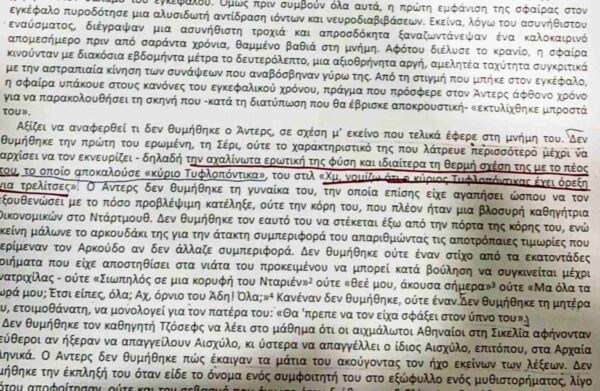 Αλλο απόσπασμα που παρουσίασε ο καθηγητής στη σχολική αίθουσα αναφέρεται σε κοπέλα και στην «αχαλίνωτη ερωτική της φύση… Και ιδιαίτερα στη θερμή σχέση της με το πέος του! Τον οποίο αποκαλούσε “κύριο Τυφλοπόντικα”… Του στιλ “χμ, νομίζω ότι ο κύριος Τυφλοπόντικας έχει όρεξη για τρελίτσες”».