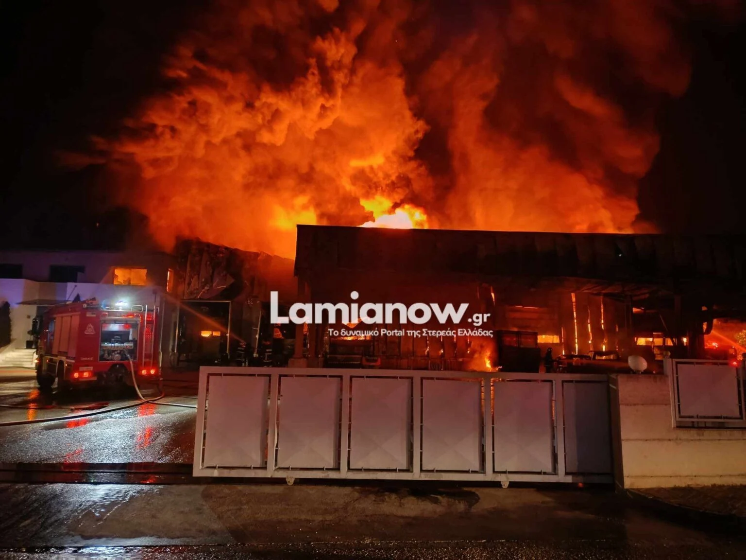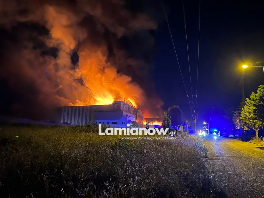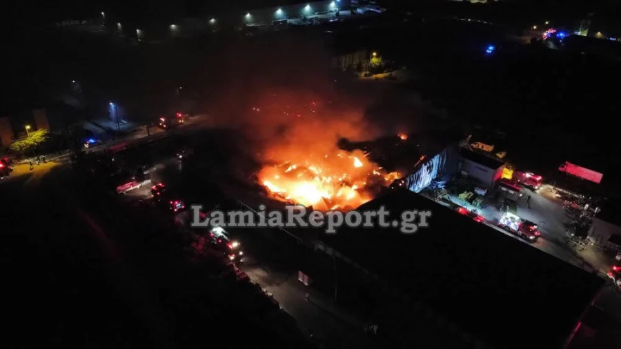 Το βράδυ της Κυριακής, το εργοστάσιο «Γιαννίτσης» στη ΒΙΠΕ Λαμίας, που συνδέεται με την υπόθεση τροφικής δηλητηρίασης δεκάδων μαθητών της πόλης. Τυλίχθηκε στις φλόγες και καταστράφηκε ολοσχερώς.