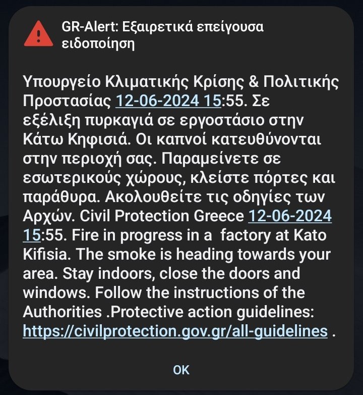 Έκτακτο μήνυμα από το 112 για τοξικό νέφος