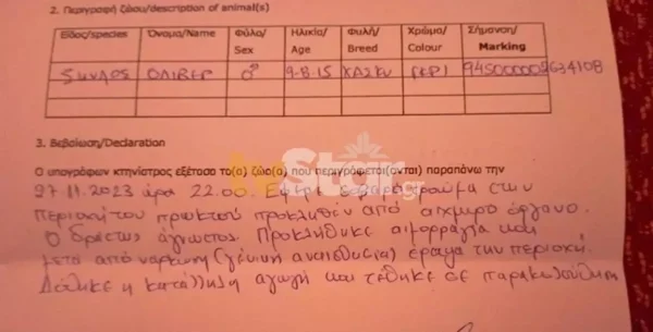 Η κτηνίατρος έγραψε στην γνωμάτευσή για: «σοβαρό τραύμα στην περιοχή του πρωκτού από αιχμηρό αντικείμενο. Προκλήθηκε αιμορραγία και μετά από νάρκωση (γενική αναισθησία) έραψα την περιοχή».