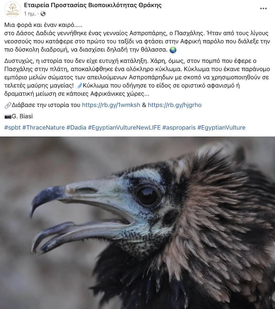 Η έρευνα από εταίρους του Προγράμματος LIFE+, με την υποστήριξη του Sahara Conservation Fund (SCF) στον Νίγηρα και του Ινστιτούτου Ορνιθολογικής Έρευνας Α.Π. Λεβέντη (APLORI) στη Νιγηρία, αποκαλύπτει ότι ο Πασχάλης και άλλα οκτώ νεοσσοί αιγυπτιακοί γύπες έπεσαν θύματα λαθροκυνηγού, ο οποίος πωλούσε τα πουλιά για χρήση σε τελετές μαύρης μαγείας.