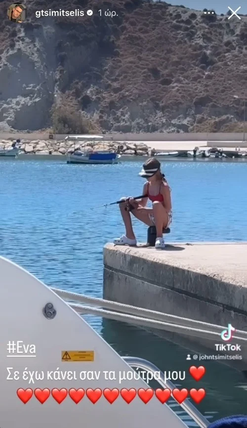 Σε ένα από τα βίντεο που ανέβασε, βλέπουμε την Εύα να περιμένει υπομονετικά με το καλάμι της για να πιάσει ψάρι, ενώ ο περήφανος πατέρας συνοδεύει τη σκηνή με τη λεζάντα «#Eva Σε έχω κάνει σαν τα μούτρα μου». Σε άλλο βίντεο στο TikTok, ο Γιάννης Τσιμιτσέλης φαίνεται να μαγειρεύει ψαρόσουπα με σκορπίνες στην κουζίνα του σπιτιού του, συνοδεύοντας την εικόνα με τη λεζάντα «Μαγειρεύοντας πατέρας κόρη».