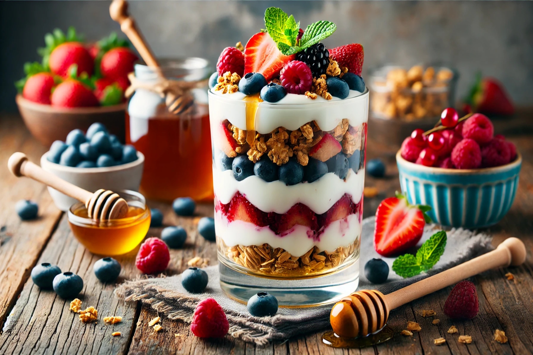 Αυτό το υγιεινό γεύμα ή σνακ συνδυάζει την κρεμώδη υφή του γιαουρτιού με φρέσκα φρούτα. Τραγανή γκρανόλα και λίγες σταγόνες μέλι για επιπλέον γλυκύτητα. Η συνταγή είναι εύκολη στην παρασκευή και μπορείτε να την προσαρμόσετε σύμφωνα με τις γευστικές σας προτιμήσεις.