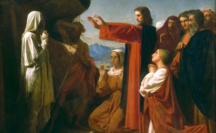 Ο Ιησούς, μιλώντας στους μαθητές του, είπε ότι ο φίλος του «κοιμήθηκε». Και ότι θα πήγαινε στη Βηθανία για να τον ξυπνήσει. Με δυνατή φωνή, ο Ιησούς κάλεσε: «Λάζαρε, έλα έξω!». Έτσι, ο Χριστός ανέστησε τον Λάζαρο τέσσερις ημέρες μετά τον θάνατό του, γεγονός που του χάρισε την προσωνυμία «Τετραήμερος».