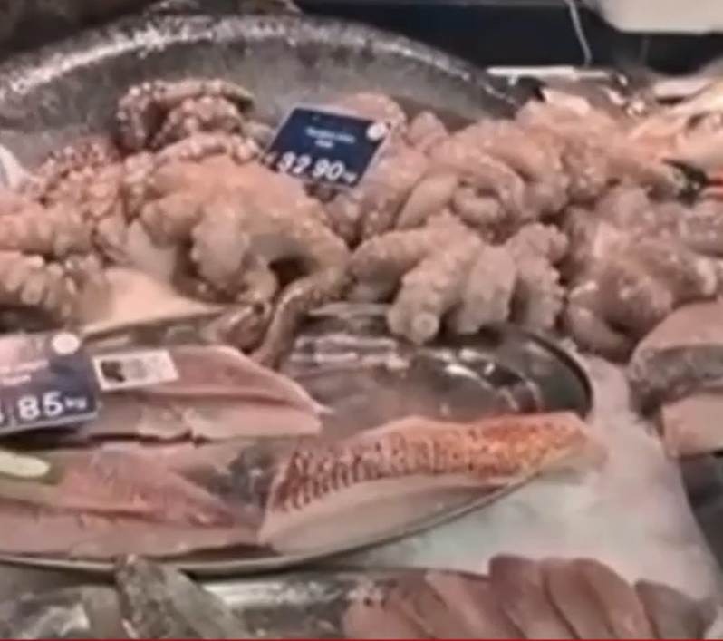 Τα θαλασσινά έχουν επίσης εξωφρενικές τιμές: το χταπόδι κοστίζει 32,90 ευρώ το κιλό, τα μπαρμπούνια 54,64 ευρώ. Επίσης η τσιπούρα και τα φαγκριά 49,80 ευρώ, και το φιλέτο μπαρμπουνιού 74,85 ευρώ. Ο Αυτιάς σχολίασε ότι τα ψάρια ψαρεύονται κοντά στην Αμβέρσα, οπότε η απόσταση δεν είναι μεγάλη.