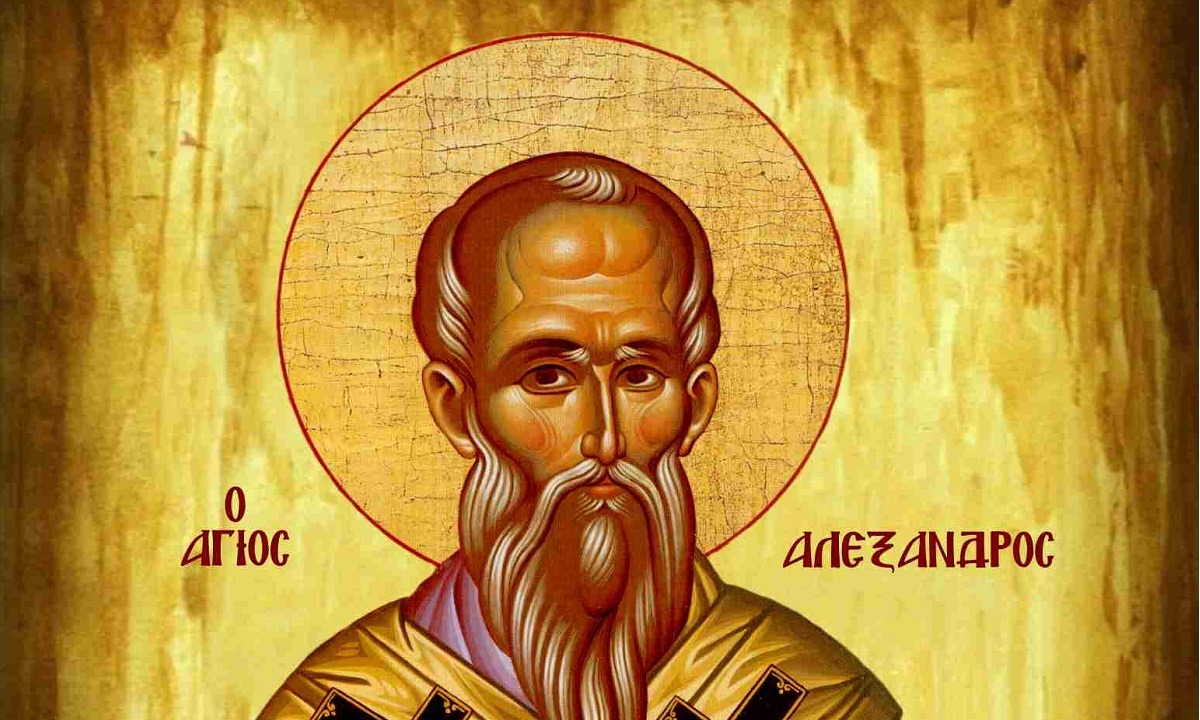 Ο Άγιος Αλέξανδρος έζησε τον 4ο αιώνα μ.Χ. και διακρίθηκε για την ευσέβεια και την αρετή του. Σε ηλικία 70 ετών, ως εκπρόσωπος του Πατριάρχη στην Α’ Οικουμενική Σύνοδο της Νίκαιας (325 μ.Χ.), τάχθηκε με σθένος ενάντια στον αιρετικό Άρειο. Μετά τον θάνατο του Πατριάρχη Μητροφάνη, ο Αλέξανδρος επιλέχθηκε ως διάδοχός του. Παρά το προχωρημένο της ηλικίας του.