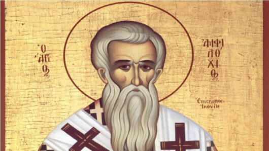 Ο Άγιος Αμφιλόχιος, που καταγόταν από την Καππαδοκία, ήταν σύγχρονος και στενός φίλος του Μεγάλου Βασιλείου. Ξεχώρισε για τη μόρφωση και την ευσέβειά του, και το 344 μ.Χ. ανέλαβε καθήκοντα Επισκόπου Ικονίου. Ο Άξιος ποιμένας διακρίθηκε για τη συμμετοχή του στη Β’ Οικουμενική Σύνοδο στην Κωνσταντινούπολη. Όπου υπερασπίστηκε την Ορθοδοξία με σθένος.