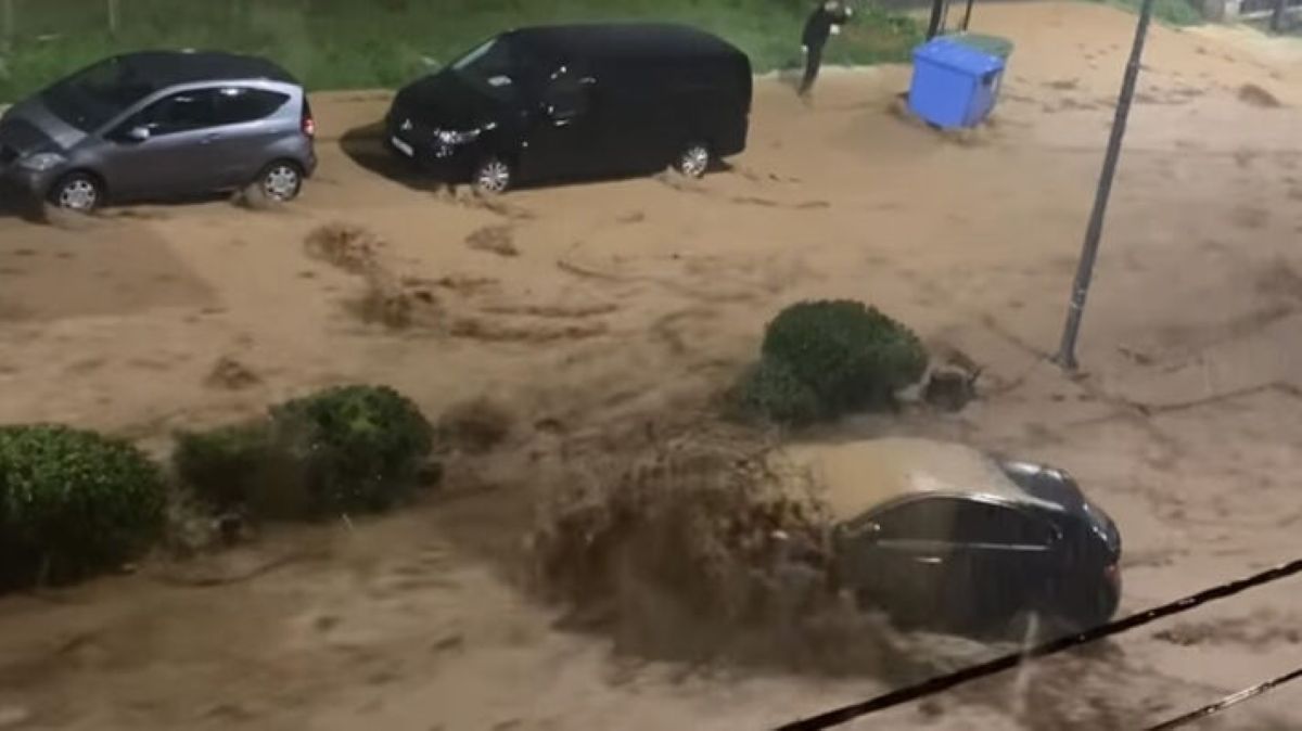 Σύμφωνα με οπτικό υλικό που δημοσιοποίησε το Forecast Weather Greece, το περιστατικό εκτυλίχθηκε όταν μια γυναίκα επιχείρησε να διασχίσει δρόμο όπου είχε σχηματιστεί ορμητικός χείμαρρος.