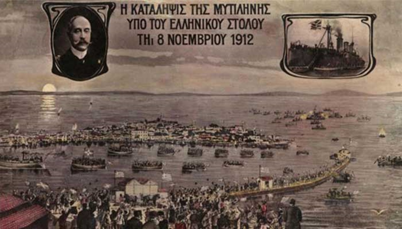 Η Λέσβος, το τρίτο μεγαλύτερο νησί της Ελλάδας, παρέμεινε υπό οθωμανική κυριαρχία από το 1462 έως το 1912. Στις 8 Νοεμβρίου 1912, κατά τη διάρκεια του Α’ Βαλκανικού Πολέμου, μια μονάδα του ελληνικού στόλου υπό τη διοίκηση του υποναυάρχου Παύλου Κουντουριώτη κατέπλευσε στη Μυτιλήνη. Εκεί ζήτησε την παράδοση της πόλης από τις οθωμανικές Αρχές. Η παράδοση πραγματοποιήθηκε άμεσα, και η Μυτιλήνη απελευθερώθηκε.
