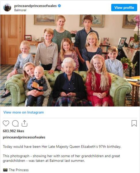 Με αφορμή τα γενέθλιά της, η πριγκίπισσα της Ουαλίας μοιράστηκε ένα συγκινητικό στιγμιότυπο… Με την αείμνηστη Βασίλισσα Ελισάβετ, να περιβάλλεται από τα εγγόνια και τα δισέγγονά της… Λίγες μόλις ημέρες από τον θάνατό της.