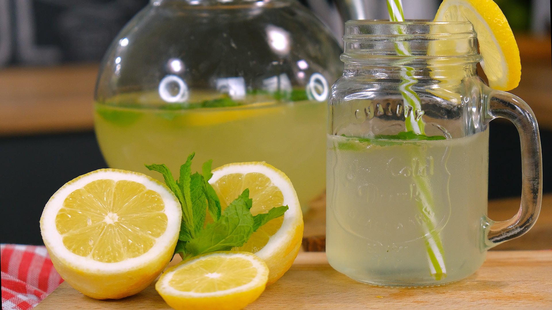 - Προαιρετικά: Φύλλα δυόσμου, παγάκια και ροδέλες λεμονιού για το σερβίρισμα