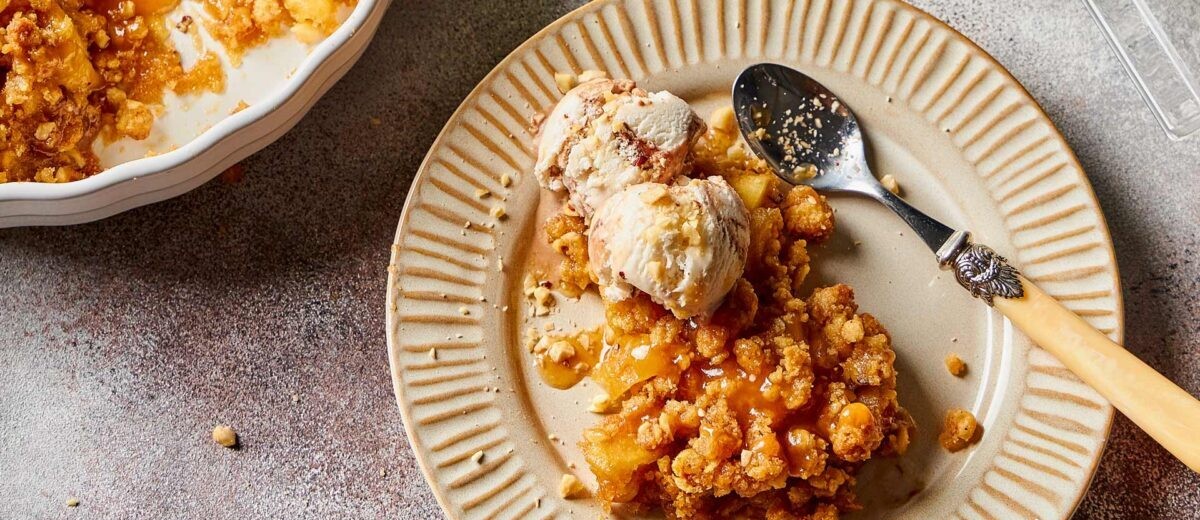 Μία λαχταριστή μηλόπιτα, ιδανική για τα γιορτινά και οικογενειακά καλέσματα, που υπόσχεται να απογειώσει τη γεύση και να γεμίσει το σπίτι σας με αρώματα κανέλας και βανίλιας. Ωστόσο η παρακάτω συνταγή συνδυάζει την κλασική, ζουμερή γέμιση μήλου με ένα τραγανό και πλούσιο crumble.
