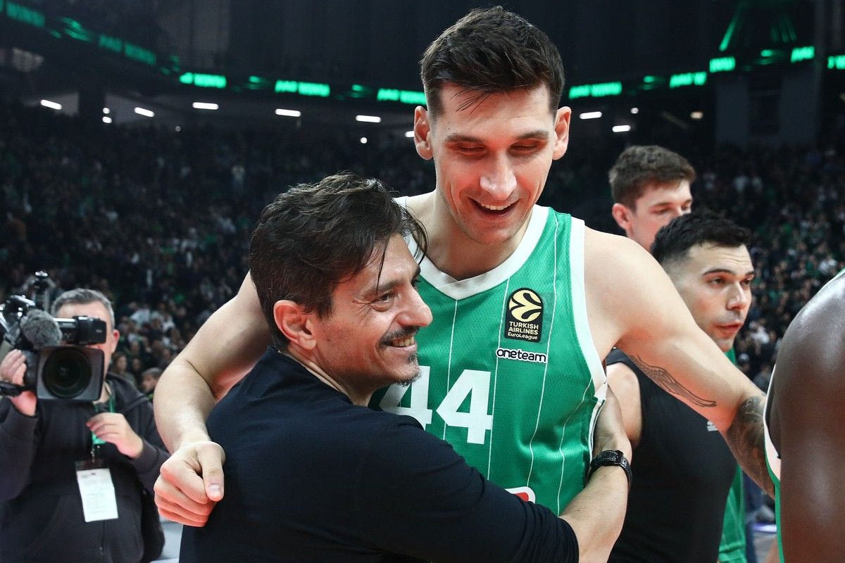 «Είμαι πάρα πολύ χαρούμενος και ευχαριστημένος για την ανανέωσή μου. Και οι δύο πλευρές το θέλαμε. Να ευχαριστήσω και να προσθέσω πως ο Παναθηναϊκός είναι οικογένεια. Ο κ. Γιαννακόπουλος είναι οικογένεια, η μητέρα του η κυρία Δέσποινα, η γυναίκα του, τα παιδιά του είναι οικογένεια, τους ευχαριστώ πάρα πολύ για την αγάπη και την εμπιστοσύνη που μου έδειξαν και σίγουρα τα συναισθήματα είναι αμοιβαία. Είμαι πάρα πολύ χαρούμενος».