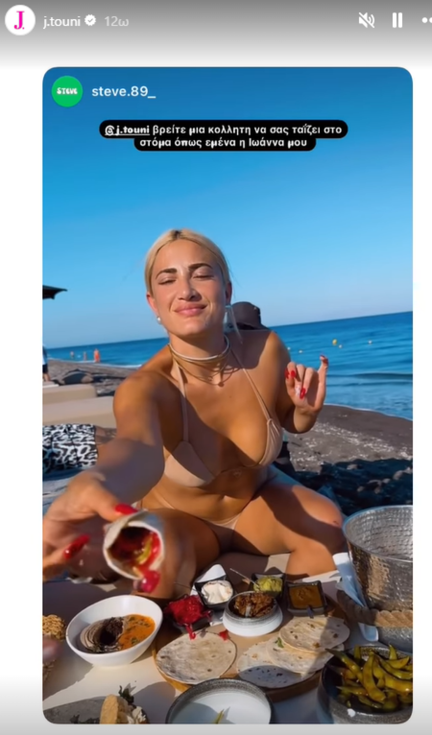 Στα stories της στο Instagram, συνεχίζει αδιάκοπα να ανεβάζει βίντεο και φωτογραφίες από τις στιγμές τους στο νησί βγάζοντας τα πάντα στη φόρα.