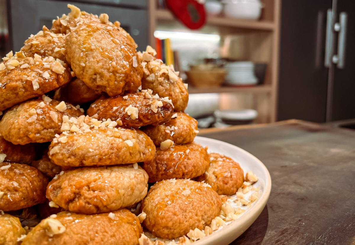 Τα παραδοσιακά μελομακάρονα είναι ένα γλυκό που μοσχοβολάει το σπίτι. Ειδικά τις γιορτινές μέρες των Χριστουγέννων. Η ζύμη τους, φτιαγμένη με ελαιόλαδο, πορτοκάλι και μπαχαρικά, γεμίζει τον αέρα με υπέροχα αρώματα, ενώ το σιρόπι από μέλι που τα διαποτίζει τα κάνει ακόμα πιο γευστικά και λαχταριστά. Το καρύδι από πάνω προσθέτει τραγανότητα και γεύση, κανοντάς τα ιδανικά για να μοιραστείτε με αγαπημένα πρόσωπα.