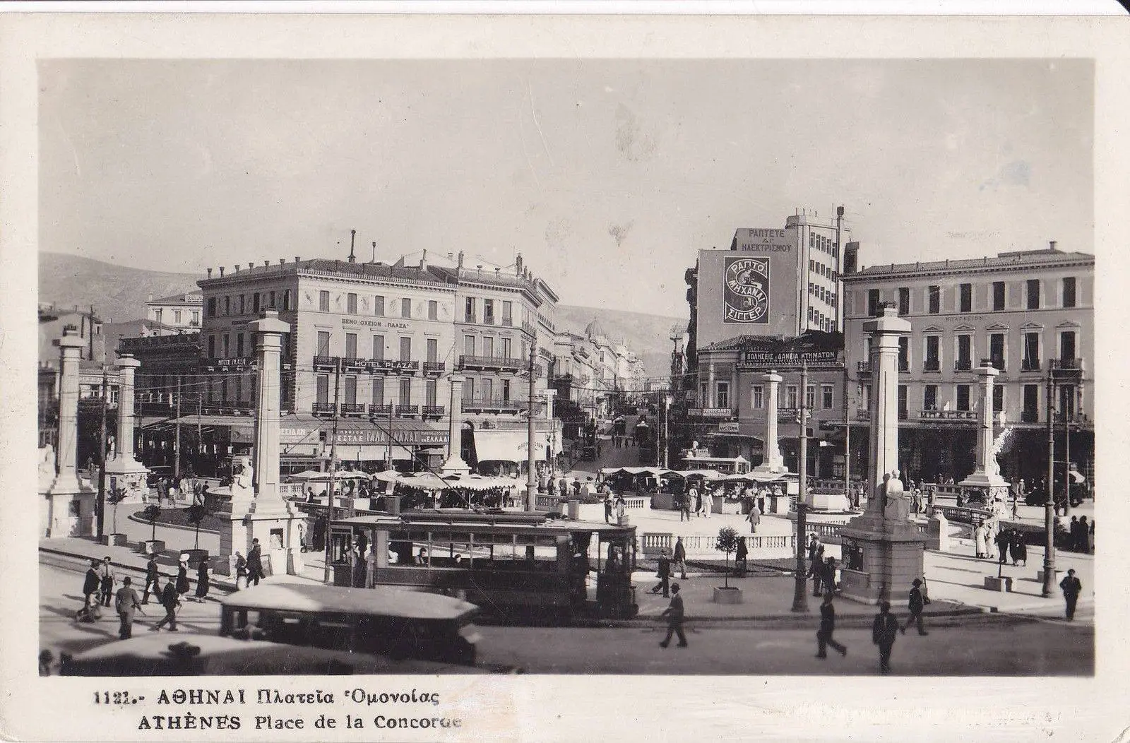 Το καλοκαίρι του 1930, η πλατεία… Ομονοίας αναδιαμορφώθηκε στο πλαίσιο των εγκαινίων του νέου υπογείου σιδηροδρομικού σταθμού από τον Ελευθέριο Βενιζέλο. Η πλατεία, που αρχικά σχεδιαζόταν ως χώρος βασιλικών ανακτόρων, απέκτησε έναν πιο φυσικό χαρακτήρα, με κιγκλιδώματα, λιγότερο πράσινο και έναν εντελώς διαφορετικό ρόλο. Κατά την υπογειοποίηση του ηλεκτρικού σταθμού, δημιουργήθηκε ένα δίκτυο εξαερισμού, οι απολήξεις του οποίου έπρεπε να καλυφθούν. Έτσι, τοποθετήθηκαν τσιμεντένιες βάσεις με αγάλματα των 8 από τις 9 Μουσών, έργα μιας ομάδας καλλιτεχνών, επί δημαρχίας Σπύρου Μερκούρη.