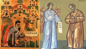 Ο Ηρώδης συνέλαβε τον Πέτρο κατά τις ημέρες της εορτής των αζύμων και τον έβαλε σε φυλακή, όπου φρουρούνταν αυστηρά. Τη νύχτα πριν παρουσιαστεί στον λαό, ο Άγγελος Κυρίου εμφανίστηκε στο κελί, φέρνοντας φως. Ο άγγελος ξύπνησε τον Πέτρο, λέγοντάς του: «Σήκω γρήγορα», και οι αλυσίδες έπεσαν από τα χέρια του.