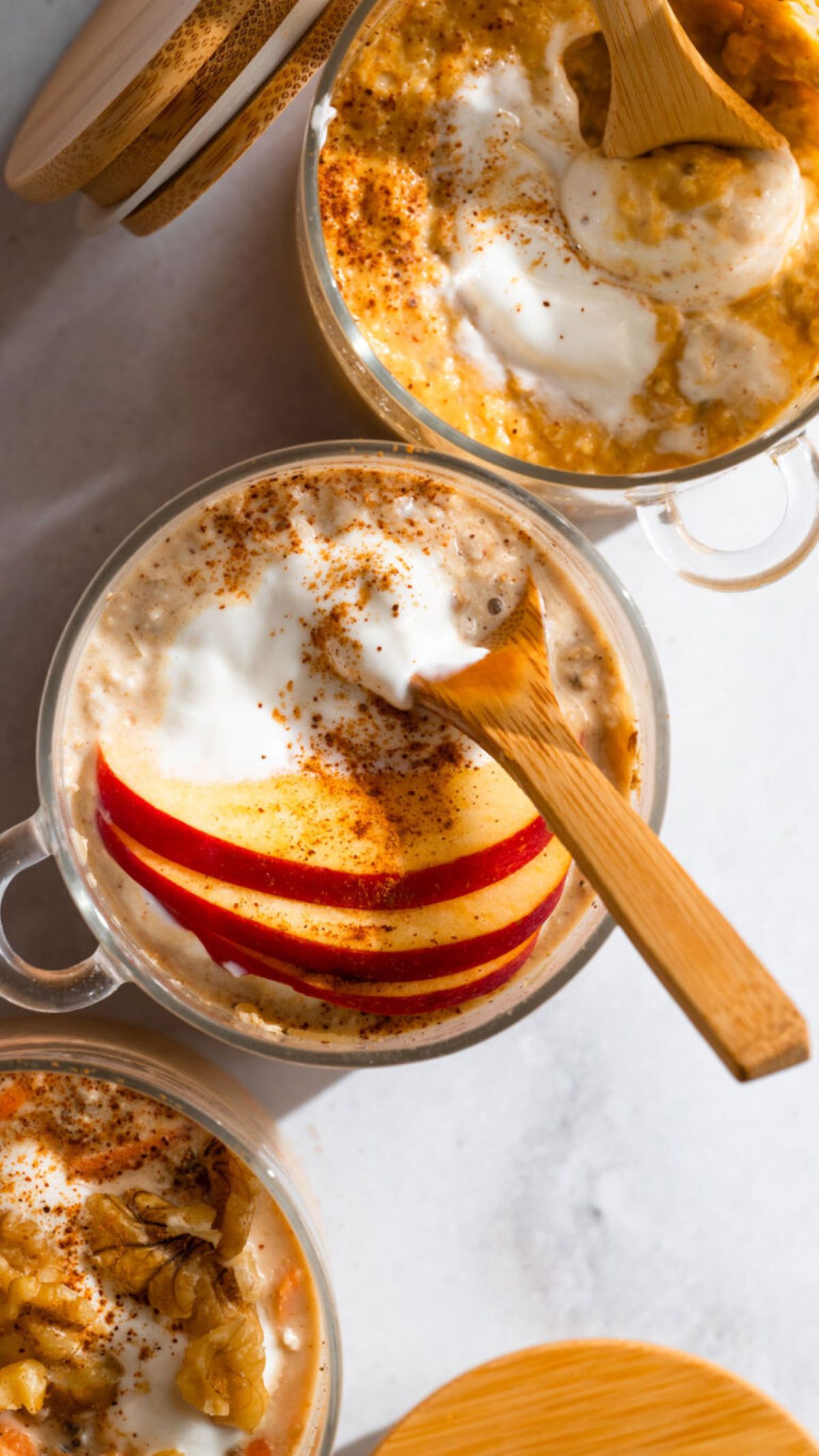 Φανταστείτε το άρωμα της κανέλας να συνδυάζεται με το γλυκό μήλο και τη βελούδινη βρώμη. Επίσης τα overnight oats με γεύση μηλόπιτας δίνουν όλη τη γεύση του κλασικού comfort food. Αλλά με την ελαφρότητα και τη θρεπτική αξία που ταιριάζει σε ένα καθημερινό, γρήγορο πρωινό.