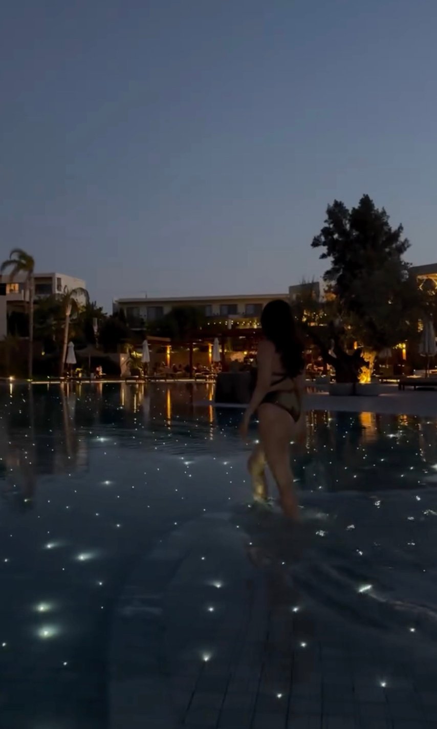 Η Ιωάννα Παλιοσπύρου δημοσίευσε ένα βίντεο όπου κάνει βουτιές σε μια πισίνα με πανέμορφα φώτα μέσα στο νερό. Τα οποία δημιουργούσαν ένα ειδυλλιακό σκηνικό. Στη λεζάντα της ανάρτησης, έγραψε: «Να κολυμπήσω σε μια πισίνα γεμάτη διαμάντια. Κάτω από τον έναστρο ουρανό».
