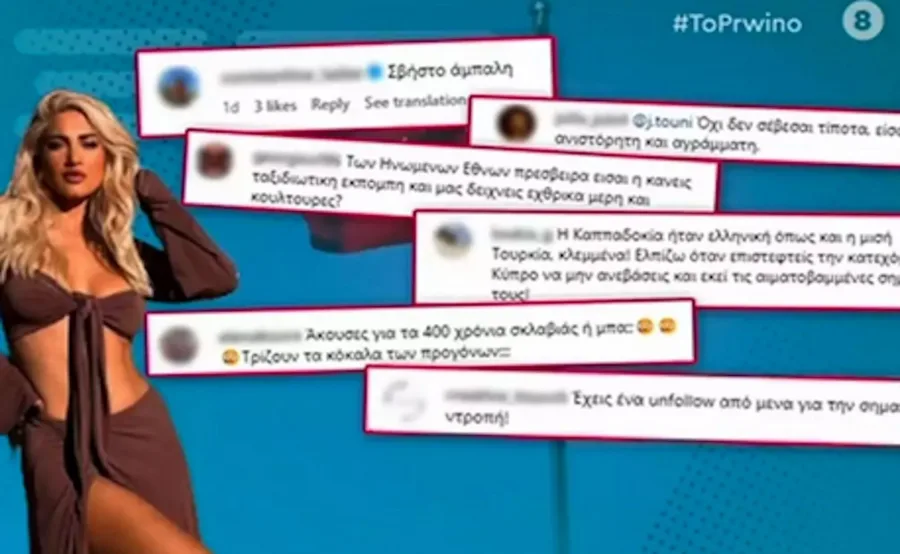 Η ανάρτηση της Ιωάννας Τούνη από την Καππαδοκία προκάλεσε έντονες αντιδράσεις. Συγκεκριμένα, οι φωτογραφίες που μοιράστηκε με τους διαδικτυακούς της φίλους, ανάμεσα στις οποίες και αυτή με την τουρκική σημαία, έφεραν κύμα κριτικής.