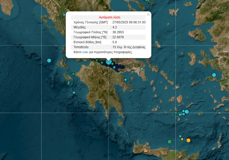 Ισχυρή σεισμική δόνηση μεγέθους 4,8 βαθμών της κλίμακας Ρίχτερ αναστάτωσε τα ξημερώματα της Τρίτης, στις 03:06, τον Κορινθιακό Κόλπο. Ο σεισμός, με επίκεντρο 13 χιλιόμετρα νοτιοανατολικά του Γαλαξιδίου, έγινε έντονα αισθητός σε ένα ευρύ φάσμα περιοχών, συμπεριλαμβανομένης της Αττικής.