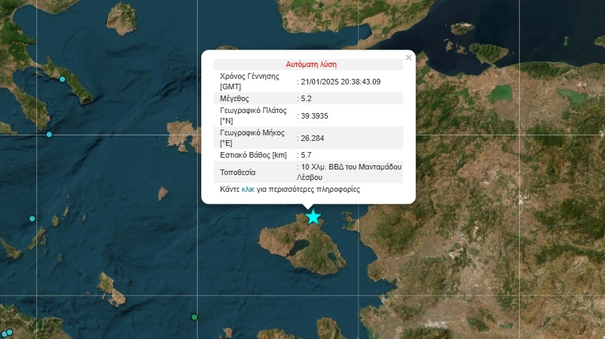 Ισχυρός σεισμός σημειώθηκε μόλις τώρα στη Μυτιλήνη, που έγινε αισθητός σε Χίο, Αλεξανδρούπολη, μέχρι και Κομοτηνή