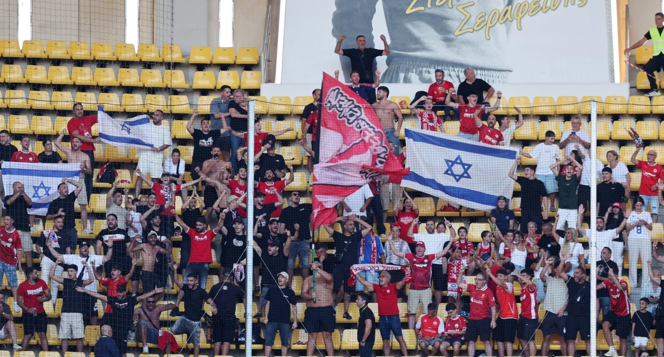 Περίπου 150 φίλοι της φιλοξενούμενης ομάδας έχουν ήδη πάρει τις θέσεις τους στις κερκίδες. Έχουν προκαλέσει αίσθηση. Καθώς βρίσκονται όρθιοι, τραγουδούν και κρατούν σημαίες του Ισραήλ στα χέρια τους, εκφράζοντας την υποστήριξή τους.