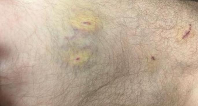 Οι φωτογραφίες-ντοκουμέντα που δημοσιεύτηκαν δείχνουν ξεκάθαρα τα σημάδια βίας και τους μώλωπες στο σώμα του 24χρονου, αποτέλεσμα της απάνθρωπης μεταχείρισης από τους απαγωγείς.
