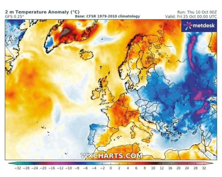 Σύμφωνα με αναφορές από το Ηνωμένο Βασίλειο, οι νότιες ακτές της ηπείρου και η Ελλάδα θα υποστούν τις συνέπειες αυτού του κρύου κύματος κατά την τελευταία εβδομάδα του Οκτωβρίου.