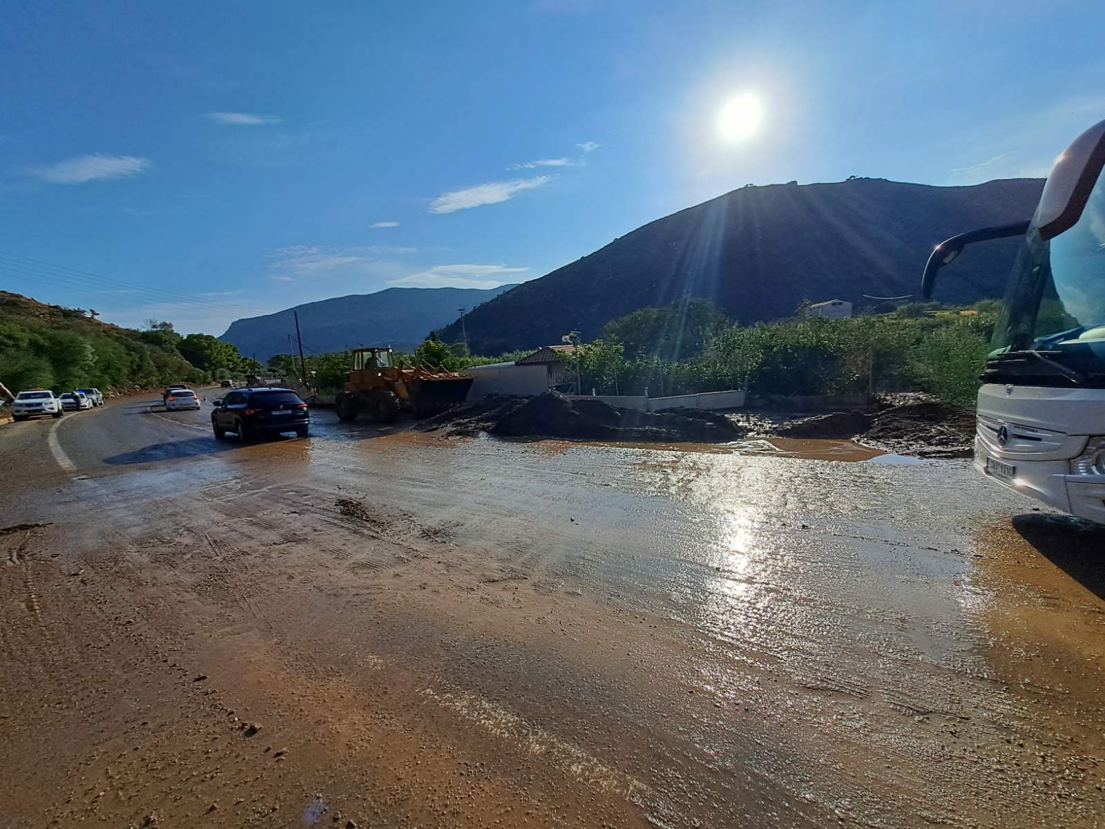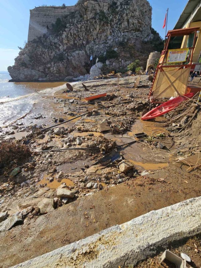 Μέχρι στιγμής δεν έχουν αναφερθεί ζημιές σε υποδομές, αν και η μισή παραλία της περιοχής πλημμύρισε. Εκτός από τα αυτοκίνητα, τα νερά παρέσυραν κάδους απορριμμάτων, ομπρέλες και ξαπλώστρες, ενώ ζημιές σημειώθηκαν και σε μία ταβέρνα.