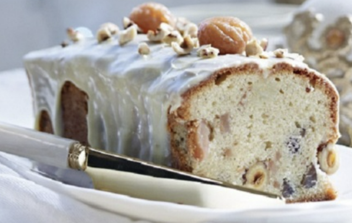 Κέικ με κάστανα, φουντούκια και γλάσο λευκής σοκολάτας