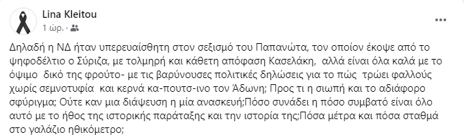 Επίθεση Κλείτου κατά Μελέτη: Είναι δηλώσεις πώς τρώει φαλλούς; Ξέσπασε η γνωστή νεοδημοκράτισσα δημοσιογράφος Λίνα Κλείτου για την επιλογή του Κυριάκου Μητσοτάκη στο πρόσωπο της Ελεονώρας Μελέτη και για το ευρωψηφοδέλτιο της ΝΔ.