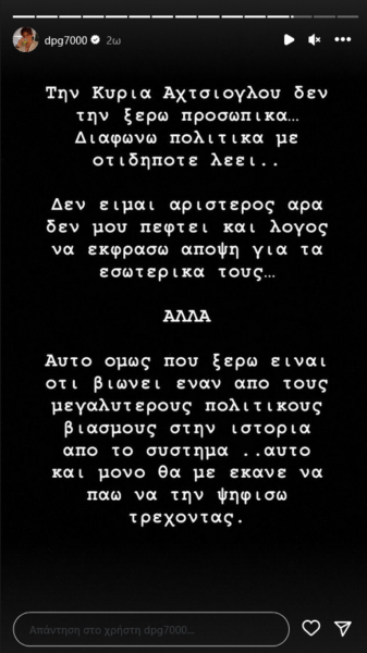 Θέση πάντως για την… κόντρα στον ΣΥΡΙΖΑ και την τρομερή προβολή που έχει ο Κασσελάκης από τα Media τις τελευταίες ημέρες πήρε και ο Δημήτρης Γιαννακόπουλος, ο οποίος μεταξύ άλλων ανέφερε πως «η κυρία Αχτσιόγλου, με την οποία διαφωνώ πολιτικά, βιώνει έναν από τους μεγαλύτερους πολιτικούς βιασμούς στην ιστορία από το σύστημα. Αυτό και μόνο θα με έκανε να πάω να την ψηφίσω τρέχοντας».