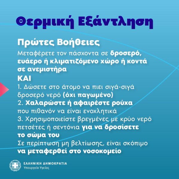 Καύσωνας: Αναλυτικές οδηγίες για περιστατικά θερμοπληξίας και θερμική εξάντλησης από του υπουργείο Υγείας – Τι να κάνετε σε κάθε περίπτωση