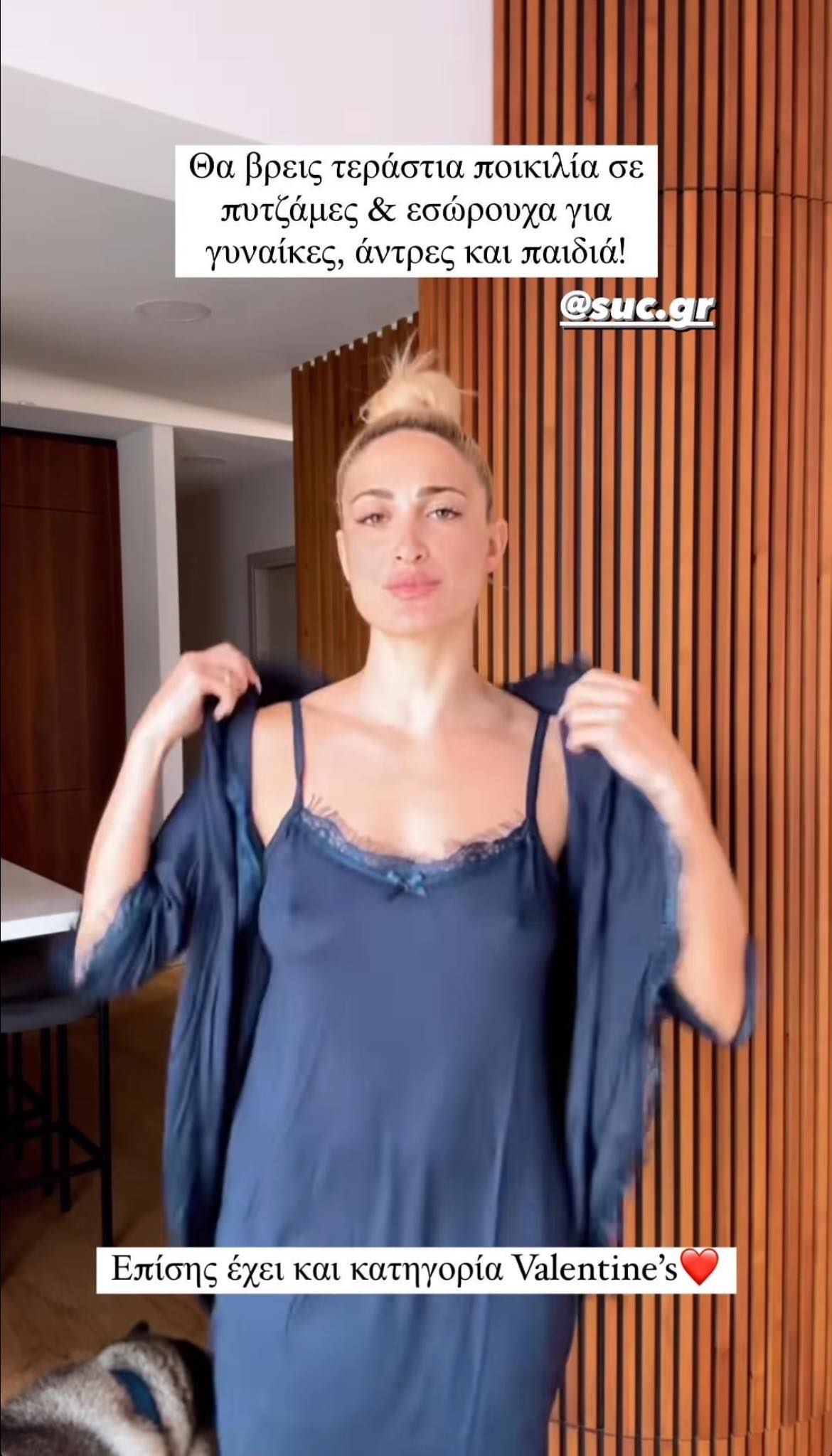 Παρακάτω την βλέπουμε να φοράει ένα φόρεμα στο οποίο φαίνονται ξεκάθαρα οι τσιτωμένες ρώγες της…