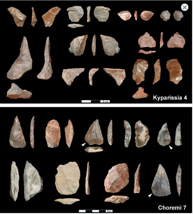 Choremi 7: Αυτή η τοποθεσία, που χρονολογείται περίπου πριν από 280.000 χρόνια, αποκάλυψε λίθινα εργαλεία και οστά ελαφιών με ευδιάκριτα σημάδια κοπής, υποδεικνύοντας ανθρώπινη δραστηριότητα.