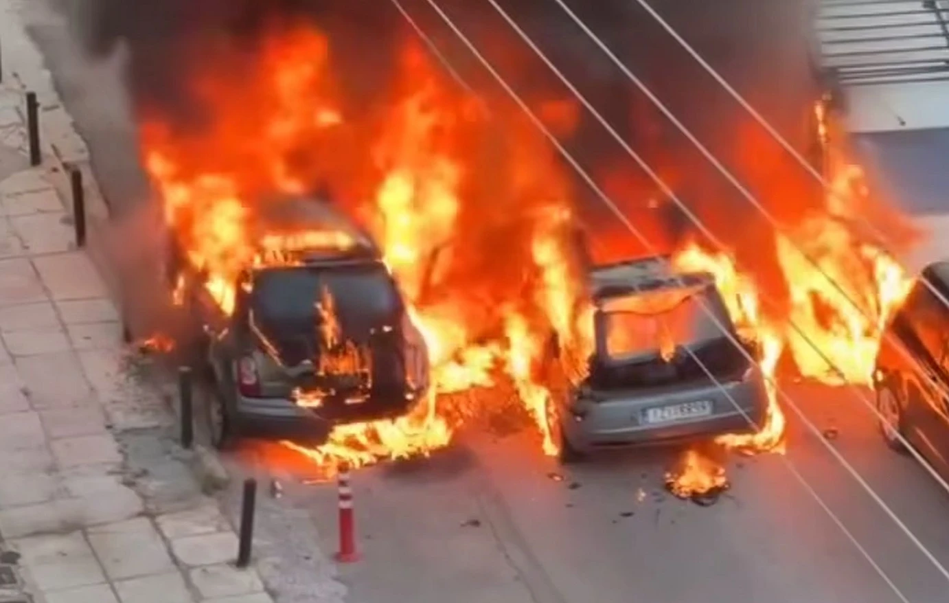 Τρία (3) σταθμευμένα ΙΧ κάηκαν ολοσχερώς.